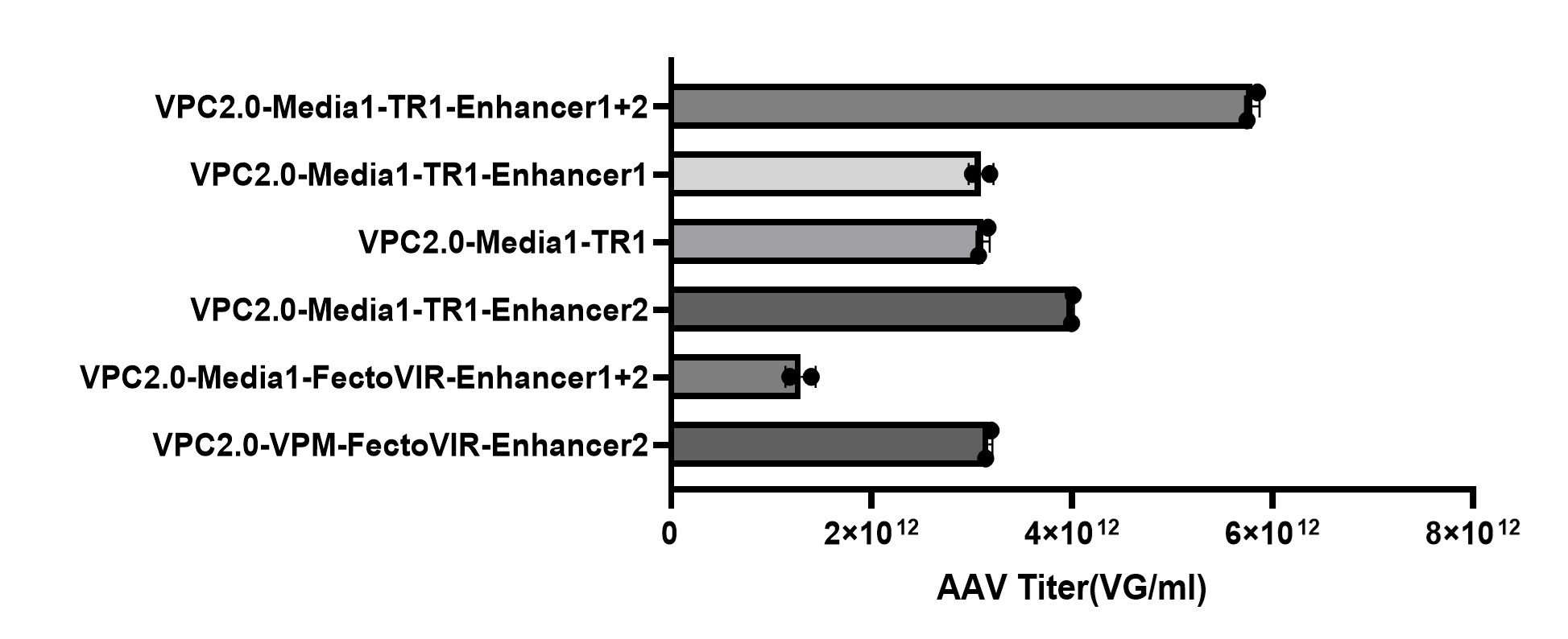 - AAV1/2/6/8: up to 2× increase